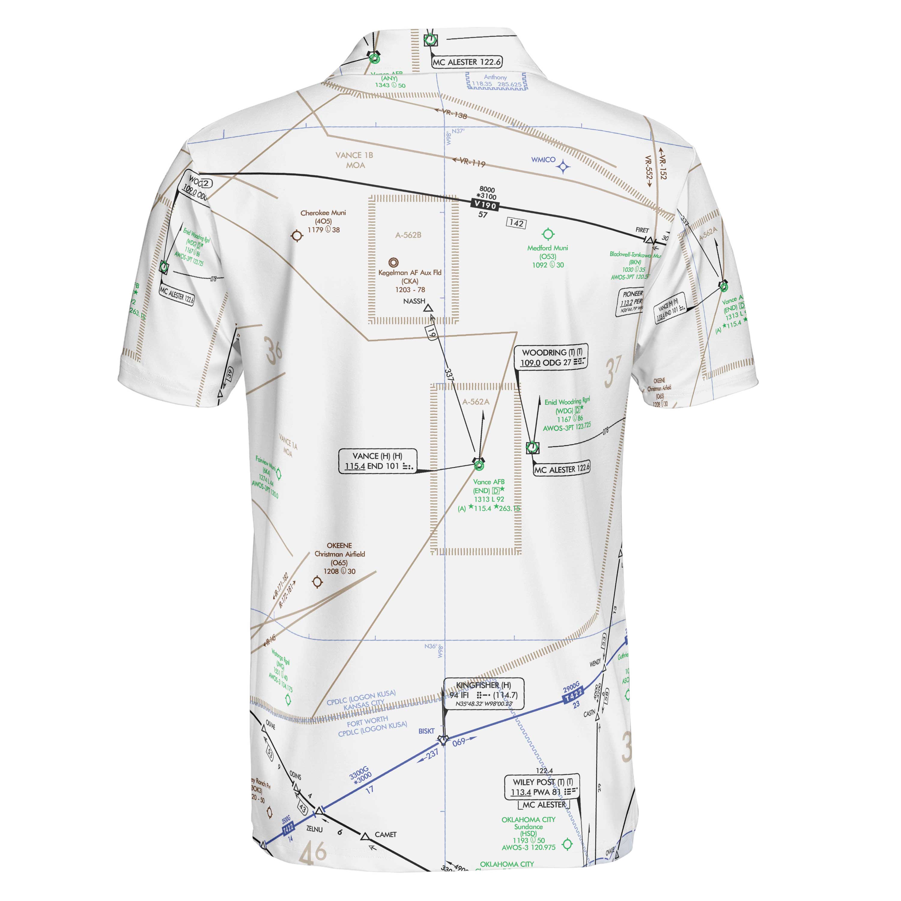 This unique IFR polo shirt features the area surrounding Vance AFB, OK.  Whether you're at the airport or out on the town you're sure to get the attention of fellow aviators.  Anytime is the best time to fly and we've got you covered in our Pilot Quarters original aviator shirt.